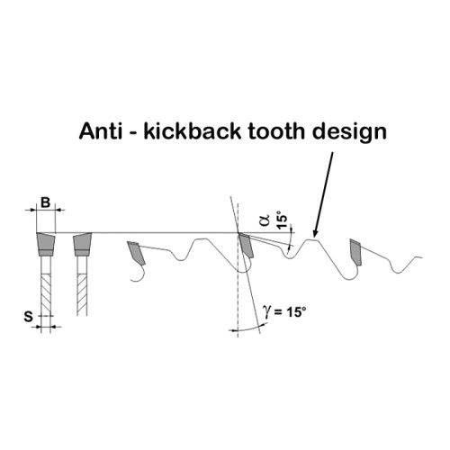 A coarse logging saw for firewood process machines and saw benches. Anti kickback tooth design. A good general purpose blade at an economical price.